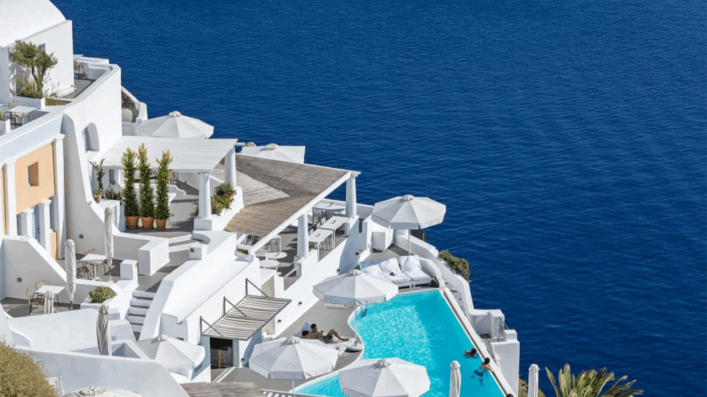 The Katikies Hotel in Santorini is another iconic clifftop retreat. Whitewashed domes and terraces overlook the Aegean Sea. Guests enjoy infinity pools and luxurious suites. Interiors are chic yet traditionally Greek. Dining includes rooftop restaurants with panoramic views. It is popular among couples and luxury travelers. Katikies offers a magical Santorini experience.