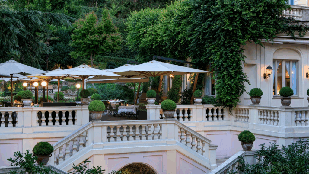 The Hotel de Russie is known as Rome’s “secret garden” for its beautiful courtyard and terraced gardens. It is located between Piazza del Popolo and the Spanish Steps. The interiors combine modern design with historic Roman style. Guests enjoy fine dining at the Le Jardin de Russie restaurant. Its spa and wellness facilities make it a peaceful retreat. Artists, celebrities, and diplomats are frequent guests. De Russie blends natural calm with urban luxury.