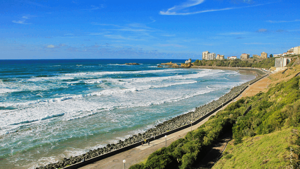 The Plage de la Côte des Basques in Biarritz is Europe’s surfing birthplace. Its waves attract surfers from around the world. At low tide, it becomes a wide sandy expanse. Cliffs provide dramatic views of the coastline. Surf schools and cafés line the promenade. It has a youthful, sporty vibe. Côte des Basques is France’s surfing capital.
