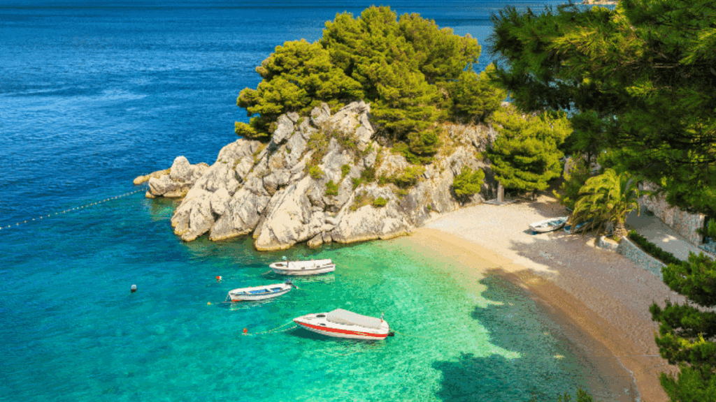 The Punta Rata Beach in Brela is famous for its clear waters and soft pebbles. The iconic Brela Rock rises from the sea near its shore. Pine forests line the beach, offering shade and beauty. It has been awarded the Blue Flag for cleanliness. Families love its safe swimming conditions. Water sports such as kayaking are also popular. Punta Rata is one of the Adriatic’s most family-friendly beaches.